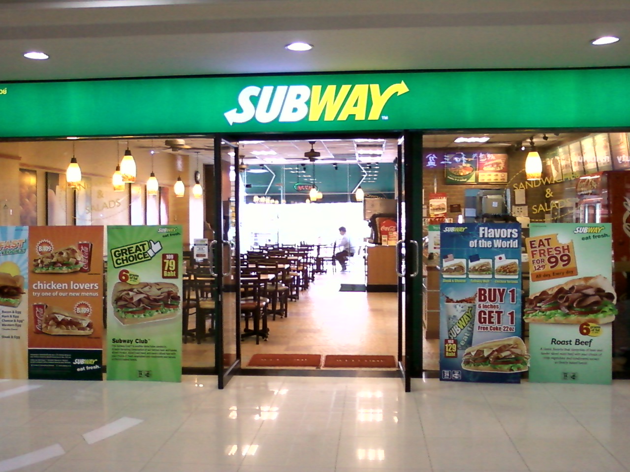このサブウェイ (ジャスミンシティ店)は、スクンビットソイ23のジャスミンタワー1Fにある日本でもおなじみのサンドイッチチェーン店です。常にフェアを実施していますので、60B程度から購入できます。ファーストフード店ですがヘルシーなので、ちょっと小腹がすいた時にもぴったりです。私はいつもテイクアウトですが、何故かいつも空いていますのでお店で食べるのもいいかもしれません。