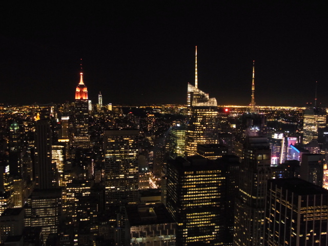エンパイアステートビルと並ぶ夜景スポットです。エンパイアステートビルを含めた夜景を見たいならぜひともこちらをオススメします。混雑していますが、それでも充分楽しめます。70階まで登るとガラスや鉄格子のない展望台から写真が撮れます。
