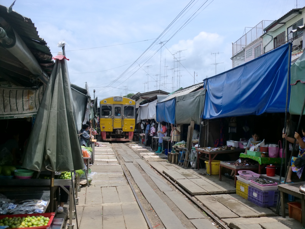 たどりつくのは大変ですが、これぞ東南アジアという混沌を現している場所です。バンコク西方から電車を乗り継ぎ終点のメークロンという市場街が線路上に出現します。行きは電車に乗って、帰りは市場から見るのをお勧めします。