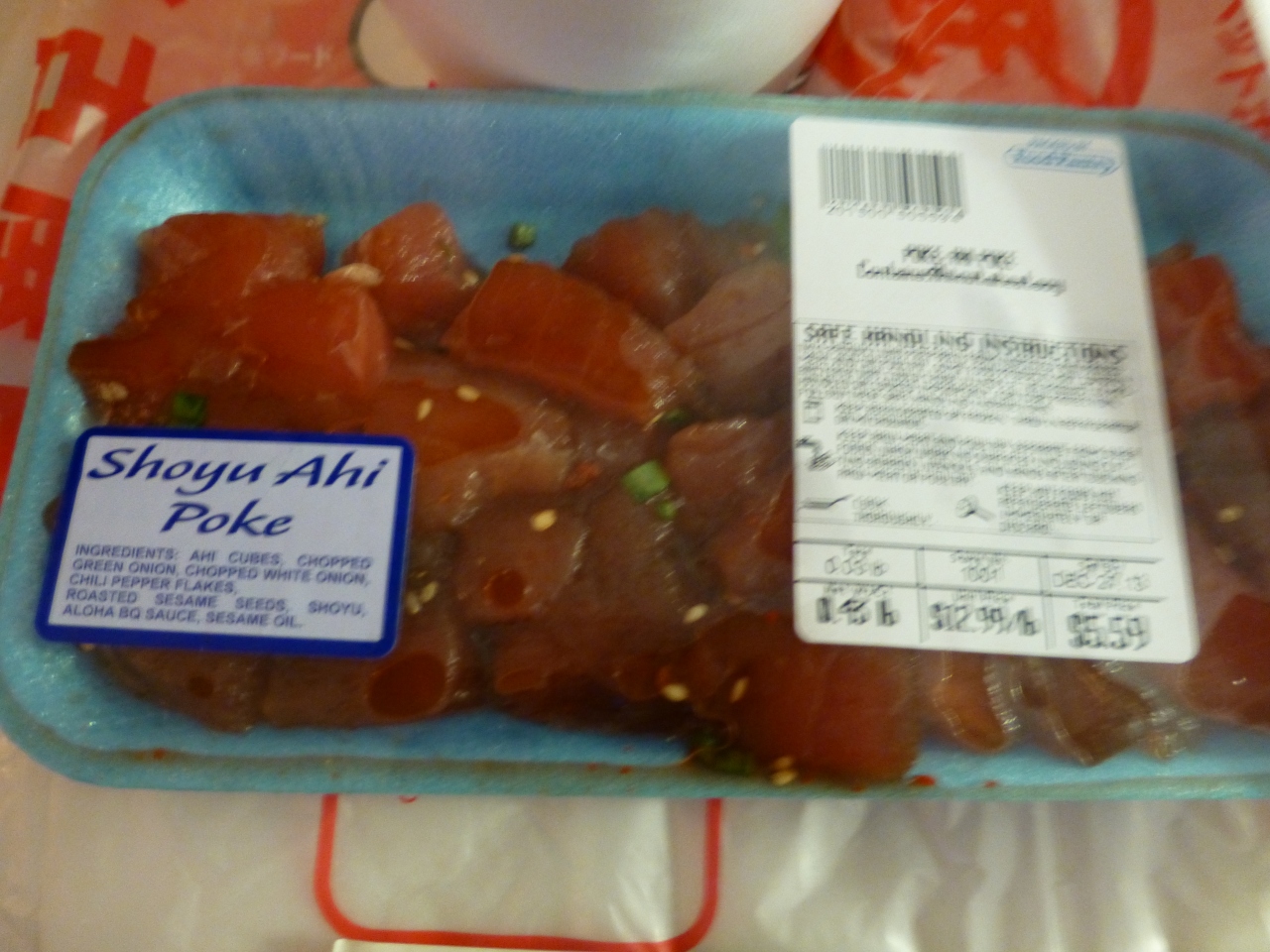 店内は、観光客も多く 食材など購入しています、キッチンのあるホテルなら、食材を購入して作ってみたいです。ワイキキだからって、そんなに高いわけでもありません。飲み物とポキを購入しました。
