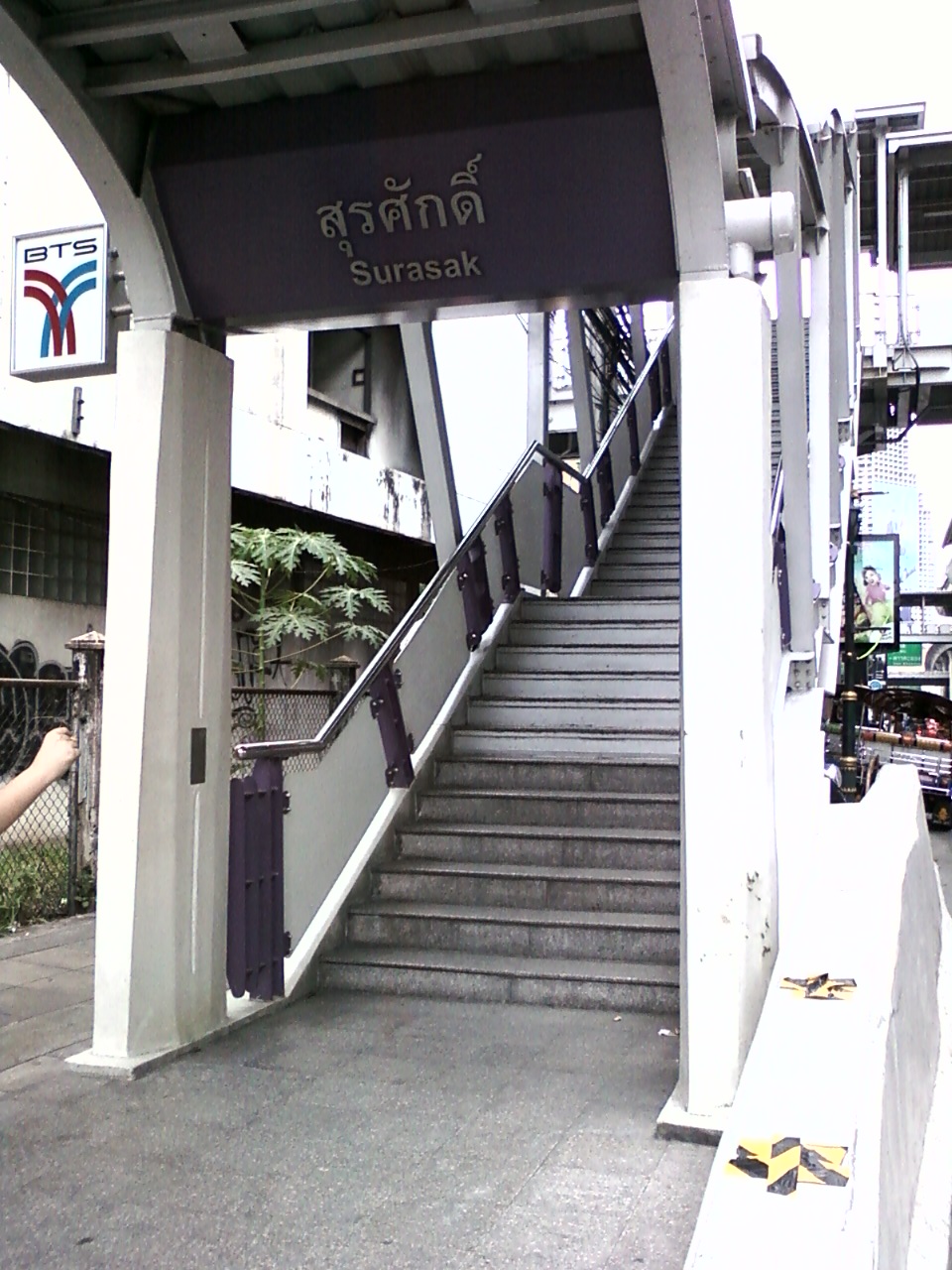 このスラサック駅 (BTS)は、サトーン通りとすらサック通りの交わる所にある駅です。シーロム駅からは二駅ですがチャオプラヤー河に近く、シーロム地区のような屋台や人ごみの喧騒はありません。交通量がとても多いので、車などに気をつける必要があると思いました。