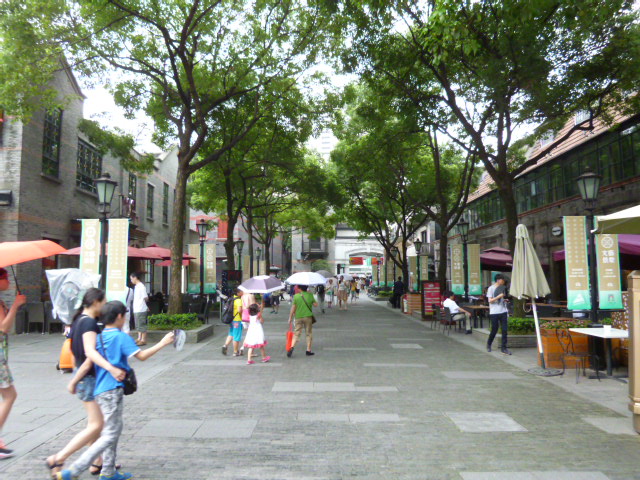 上海の古い街並みを生かしつつ、モダンでヨーロッパを感じさせる街にリノベーションしています。バーやレストラン、洒落た小物を扱う店舗は軒を連ねており日本人はもとより欧米からの観光客が多く訪れる場所になっています。上海の物価水準の遥か上を行く、日本並みがそれ以上の値段が付けられていますのでご注意を。