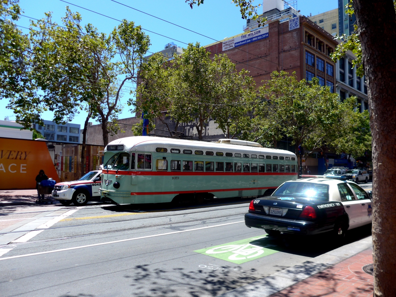ケーブルカーに観光客が殺到しているが,待つ時間も長い.Powell StからFisherman's WharfまではF-lineのMuni Metroも行っている.日中でも15分おき.待ち時間0.地元の人が乗ってくるのでそれも楽しい.ケーブルカーが6ドルだが2ドルと安いのも魅力!
