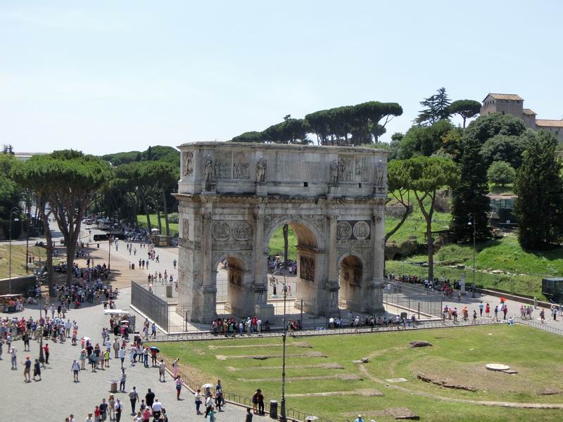 ミルウィウス橋の戦いに勝利したのを記念して315年に建てられました。ローマにはいくつか凱旋門がありますが、この凱旋門が最大。パリのエトワール凱旋門とは比べ物にならないくらい古い歴史があります。彫刻もすばらしいです。ただし、柵に囲われているため残念ながら門の下をくぐることはできません。コロッセオのすぐ隣にあり、行った人は必ず視界に入っていると思います。周辺は人が多いですが、見学は入場の行列があるわけでもなく、見える所から自由にできるのでさほど気になりませんでした。コロッセオの上階からもよく見えます。