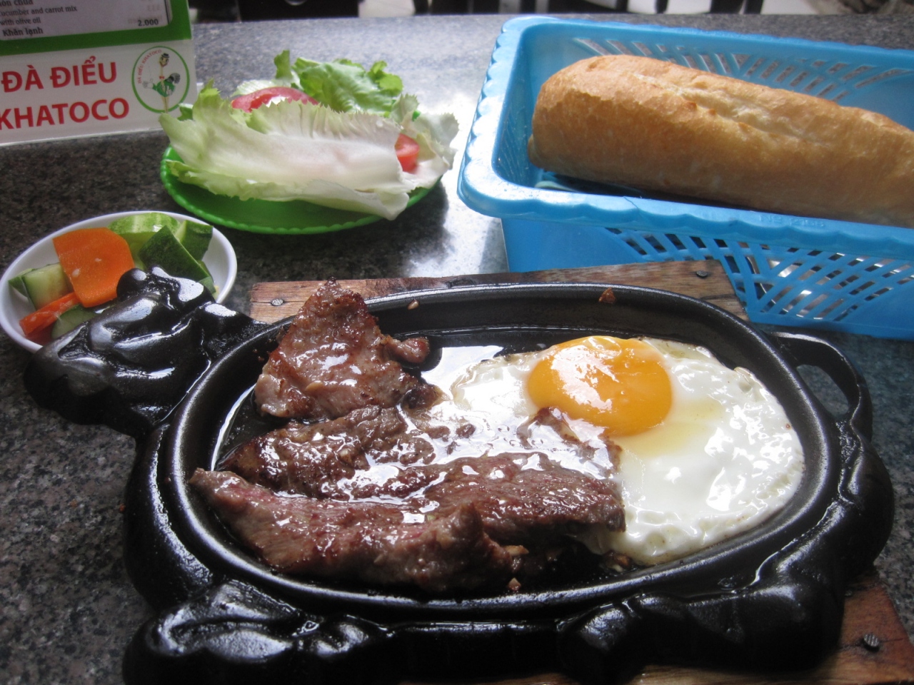 ベトナム料理本でこんな見出しを見てから、一度は試してみたくて朝にステーキを食べに行ってみました。
