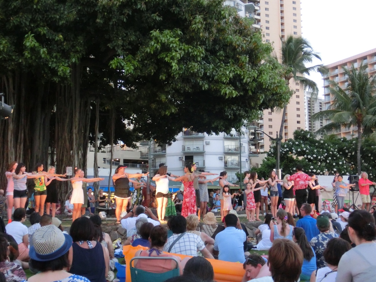 ショーはもちろんですが、一般の人がステージに上がりフラのレクチャーを受け踊るのはとても楽しそうでした。フラダンスを習っている人も結構いますよね。知り合いには会わないだろうし、きれいな海を見ながらいかがでしょうか?