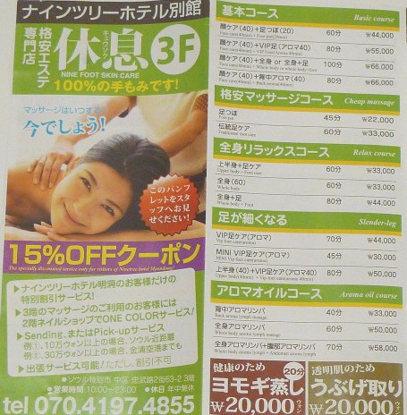 ナインツリー泊で割引マッサージ