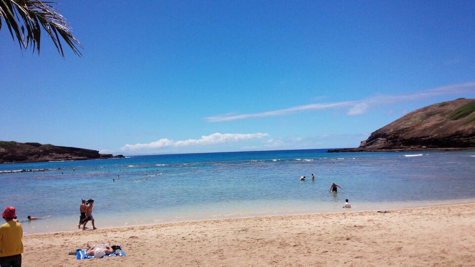 日曜の10時前着ぐらいでハナウマ湾に行きました。いろんな口コミで早い時間に駐車場が満車になる、と聞いていたのでとりあえず空いていてよかったです。入場料と説明を聞いて、いざ海へ!とりあえずテンション高くなりながらひととおり海で魚を鑑賞です。晴れてくると空と海との色の対比が何ともいえず、本当に綺麗です。結構遠くまで行っても浅瀬なので、小さな子供でも安心して楽しむことができます。簡易なものですが、トイレもシャワーもあります。