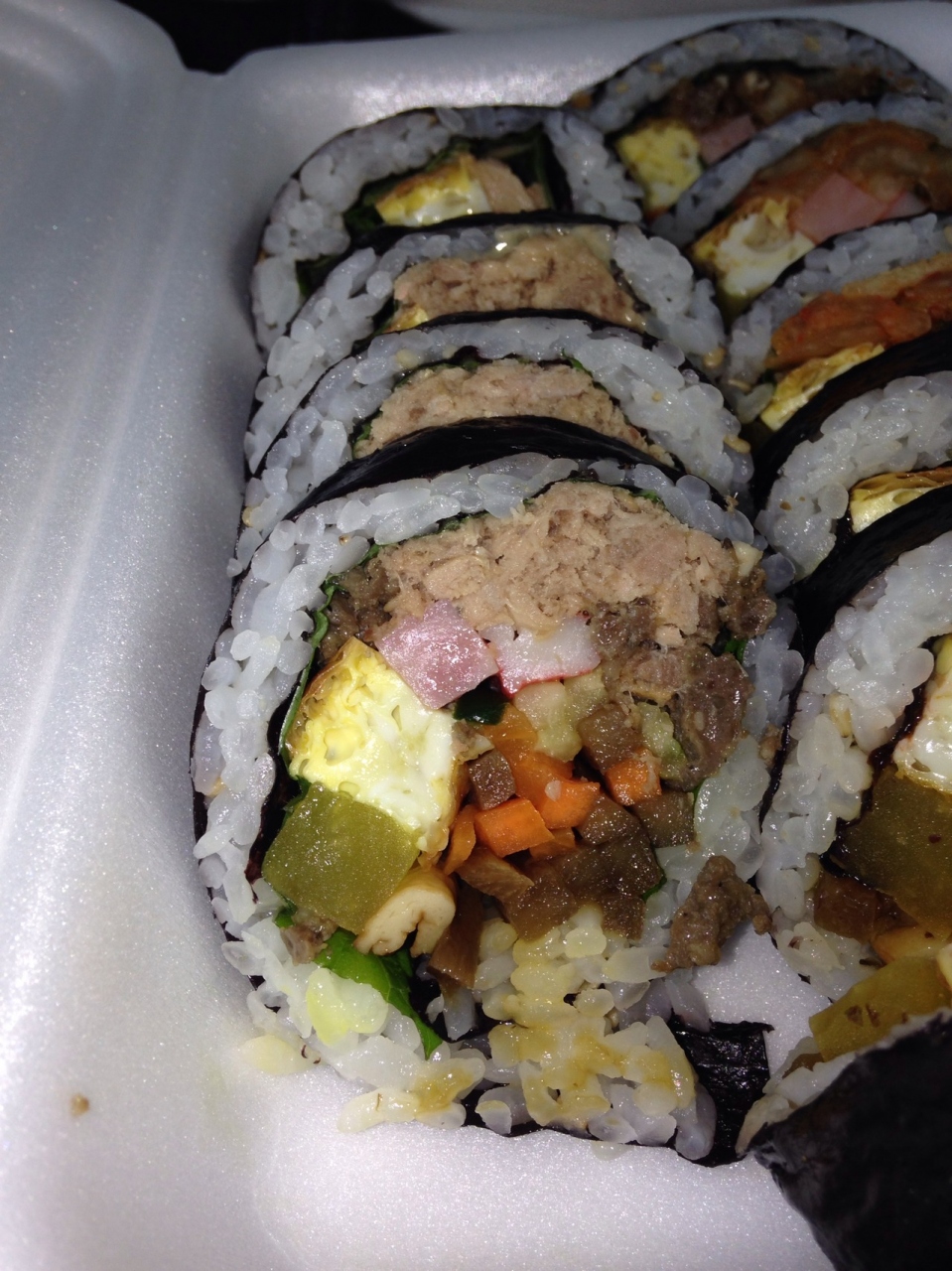 肉オンリーのと、色々な味が入ってる海苔巻きの二つを買って、帰りの空港でたべました。