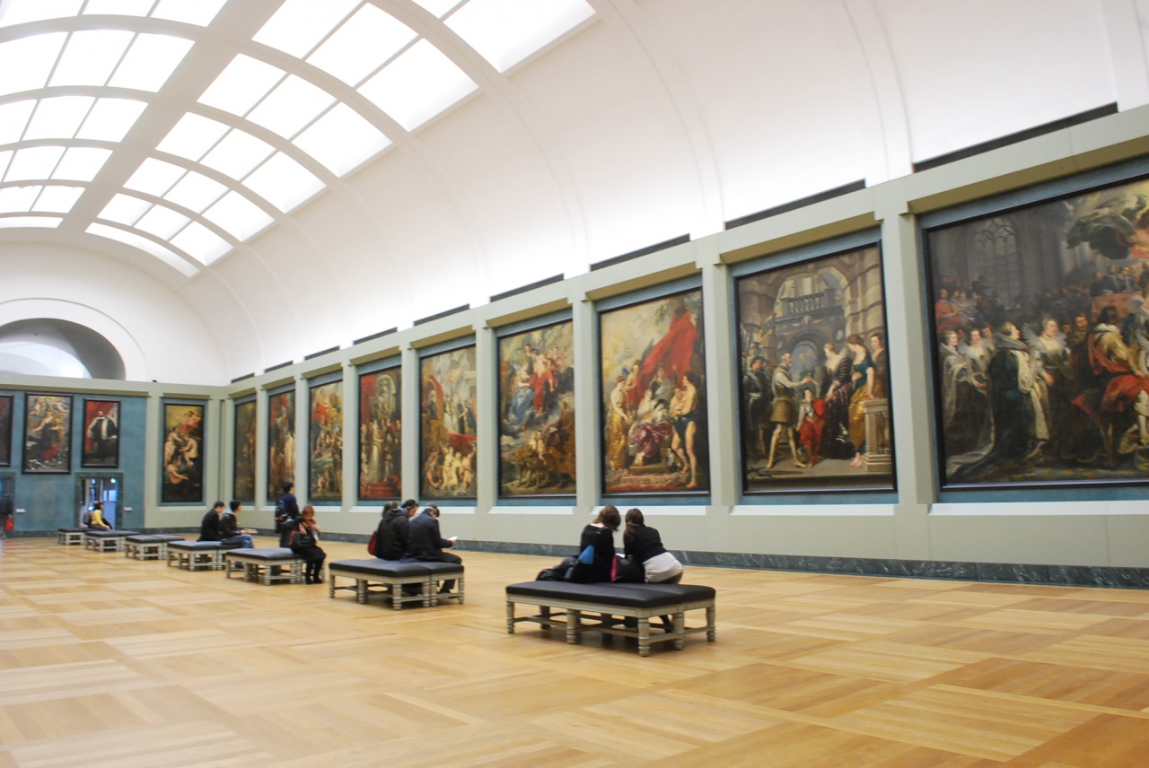 ピラミッドがあるメインの入り口は長蛇の列・・ですが入り口はそこだけではないので混んでいる場合は他の入り口に行く方が早く入れます。噂通り展示品の数がとても多いのでランチ込で6時間滞在しましたが全て見ることは不可能でした。モナリザ前の人だかりは本当にすごいのでスリに注意です。