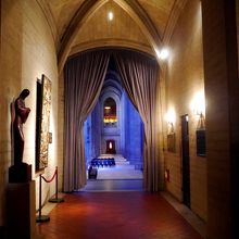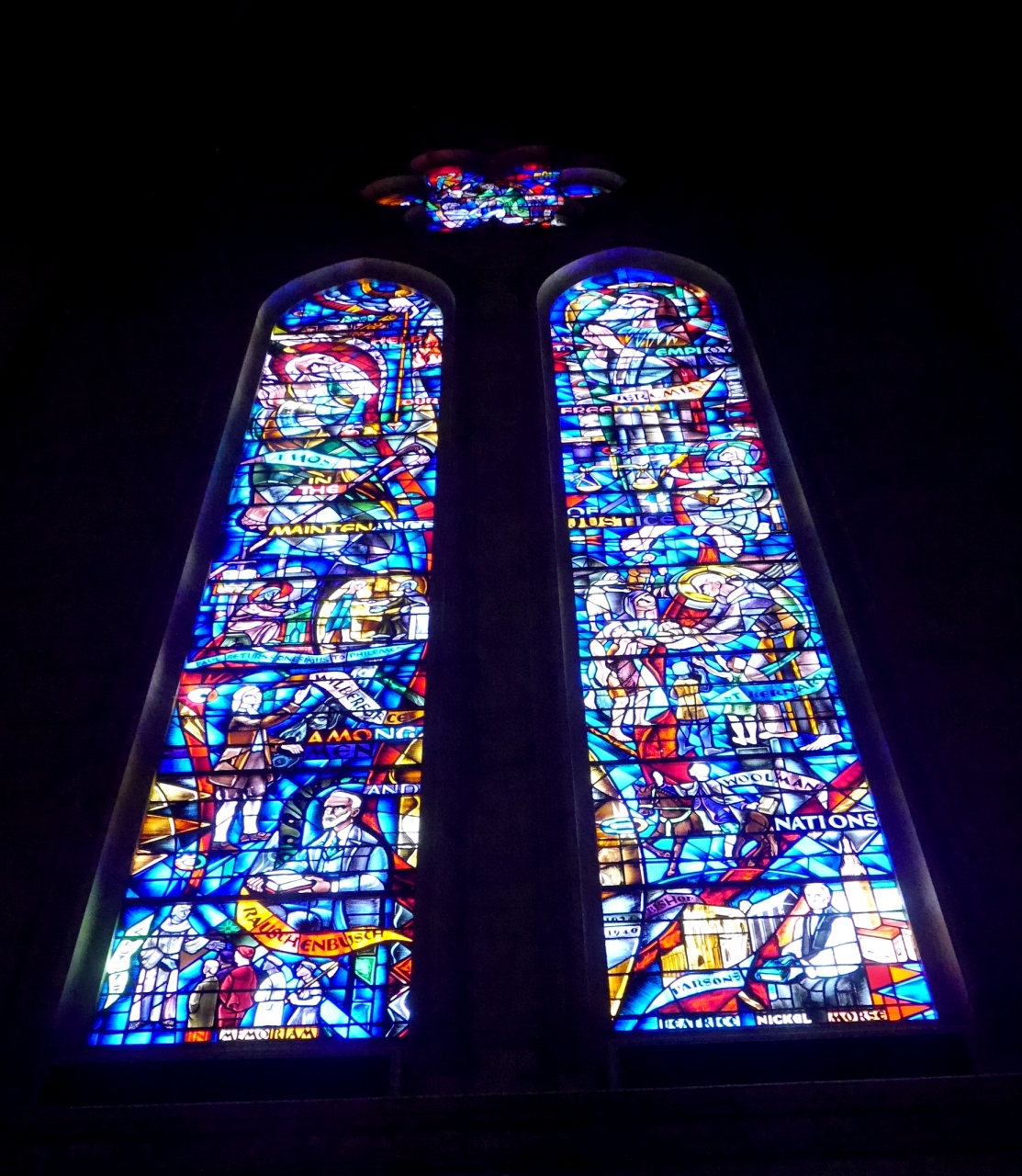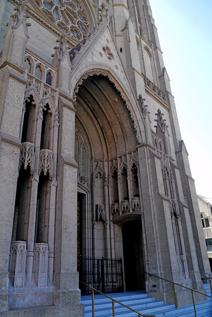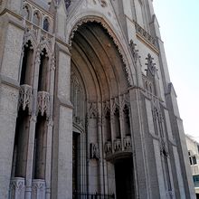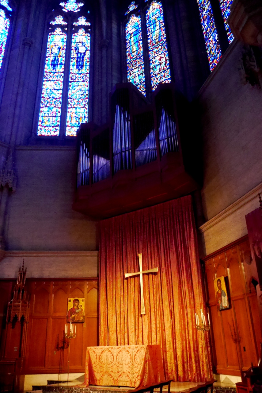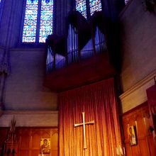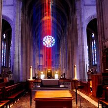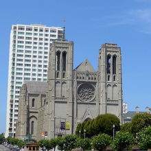 グレース大聖堂は聖公会系監督派の聖堂だ.ともかく天井から下がったグラスファイバー(とおもわれる)とステンドグラスで光の世界!すばらしい!確かにカトリックともプロテスタントとも違う雰囲気.静寂が光をさらに強調する.キースへリングのキリストの生涯 1989年 31歳でAIDSでなくなったが,思いが伝わってくるような作品だ.ノブヒルの高級な雰囲気とマッチしている.