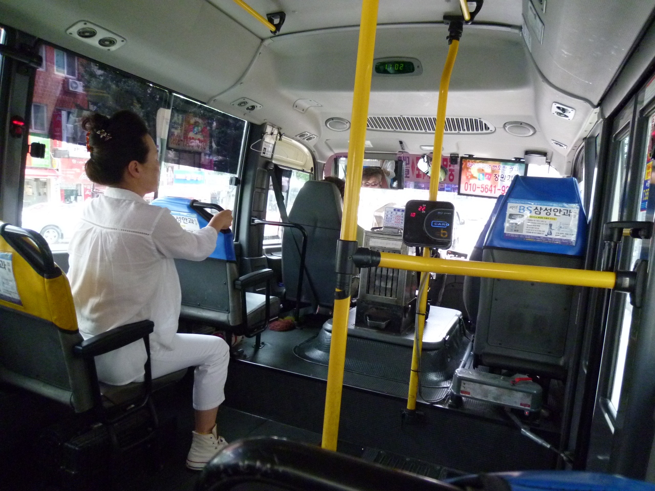 乗車時に料金(1,000W)を払います。降りるときには早めにボタンを押さないと通過してしまいます。