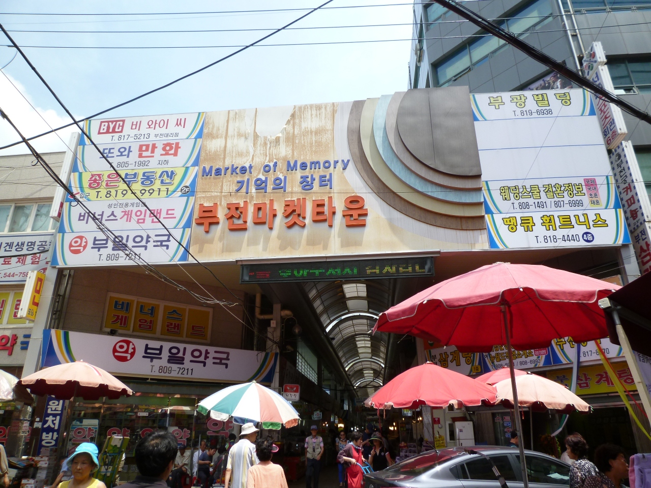 地下鉄釜田駅を出てすぐのところにある市場です。西面駅からも地下街を使って近くの出口まで行くことができます。