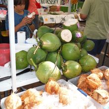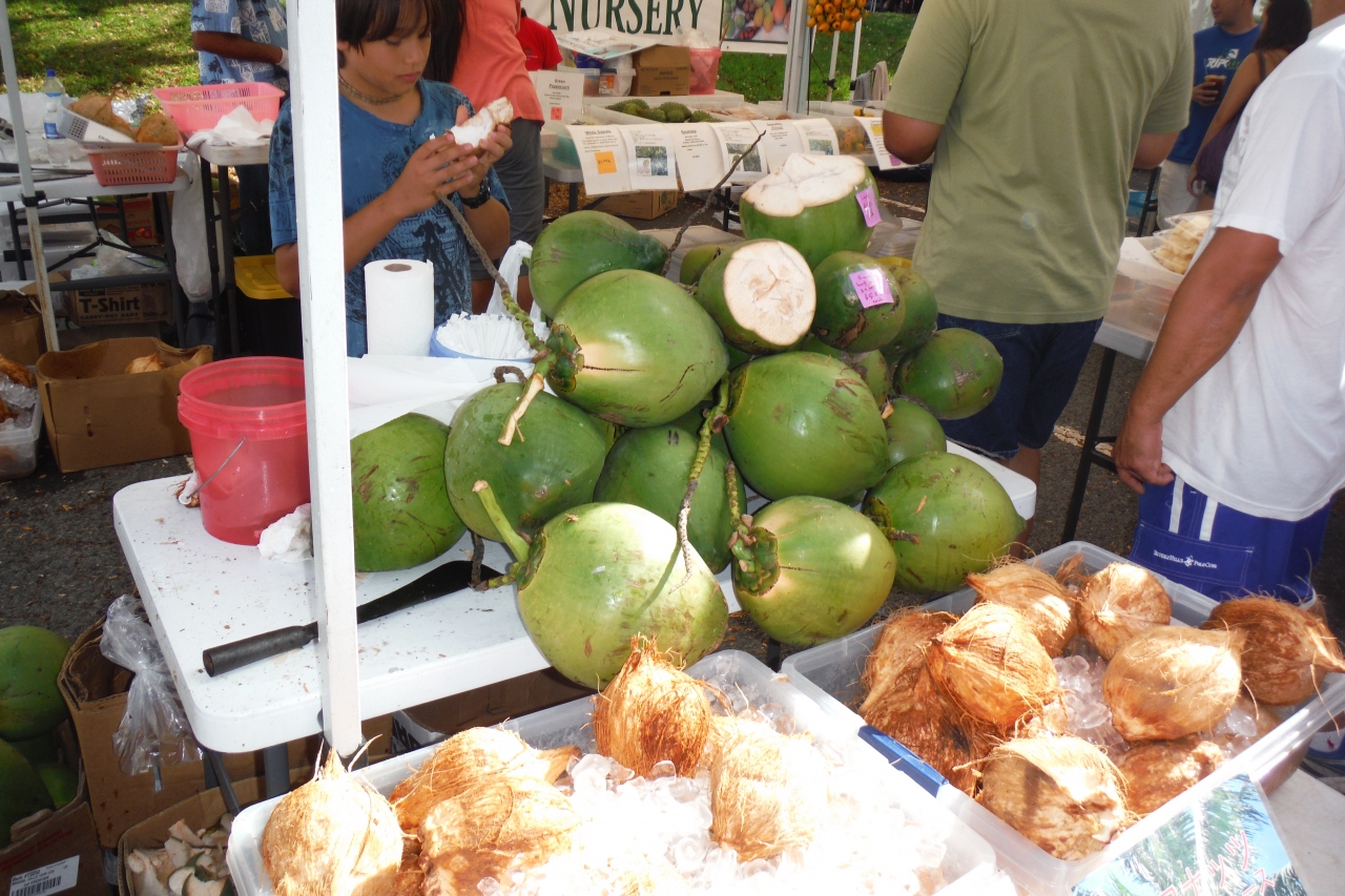 中々座るとことろを見つけるのも大変。それでも青トマトフライやら、野菜作りで有名なおじさんの青汁とか、ククイ・ソーセージスティックとか定番をいただいて、カウコーヒーも買いました。