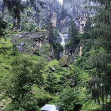 マナリー、ヴァシシュト村にある滝です。 村の奥(北側)の小学校の下の小さな橋を渡ってすぐ右折します。(看板あり)その後は小道がいくつか別れていて少しわかりにくいです。案内板などはないので途中にあるチャイ屋やすれ違う人に聞いた方がいいです。村の入口の広場から40分ほどで滝の下まで行けます。晴れていれば道中の景色もよくミニトレッキングが楽しめます。サンダルでもOKです。