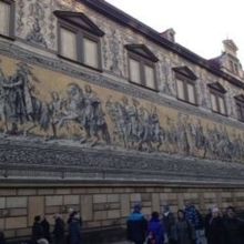2万枚以上のマイセン磁器のタイルで描いた大壁画。長さは102メートルもあるそうです。路地に入るといきなり現れます。