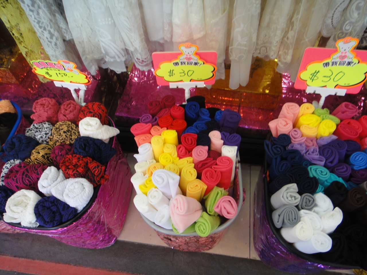 南側には布地屋さんがずらり、半端物も色鮮やかに安い!