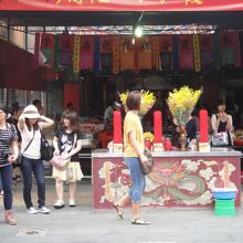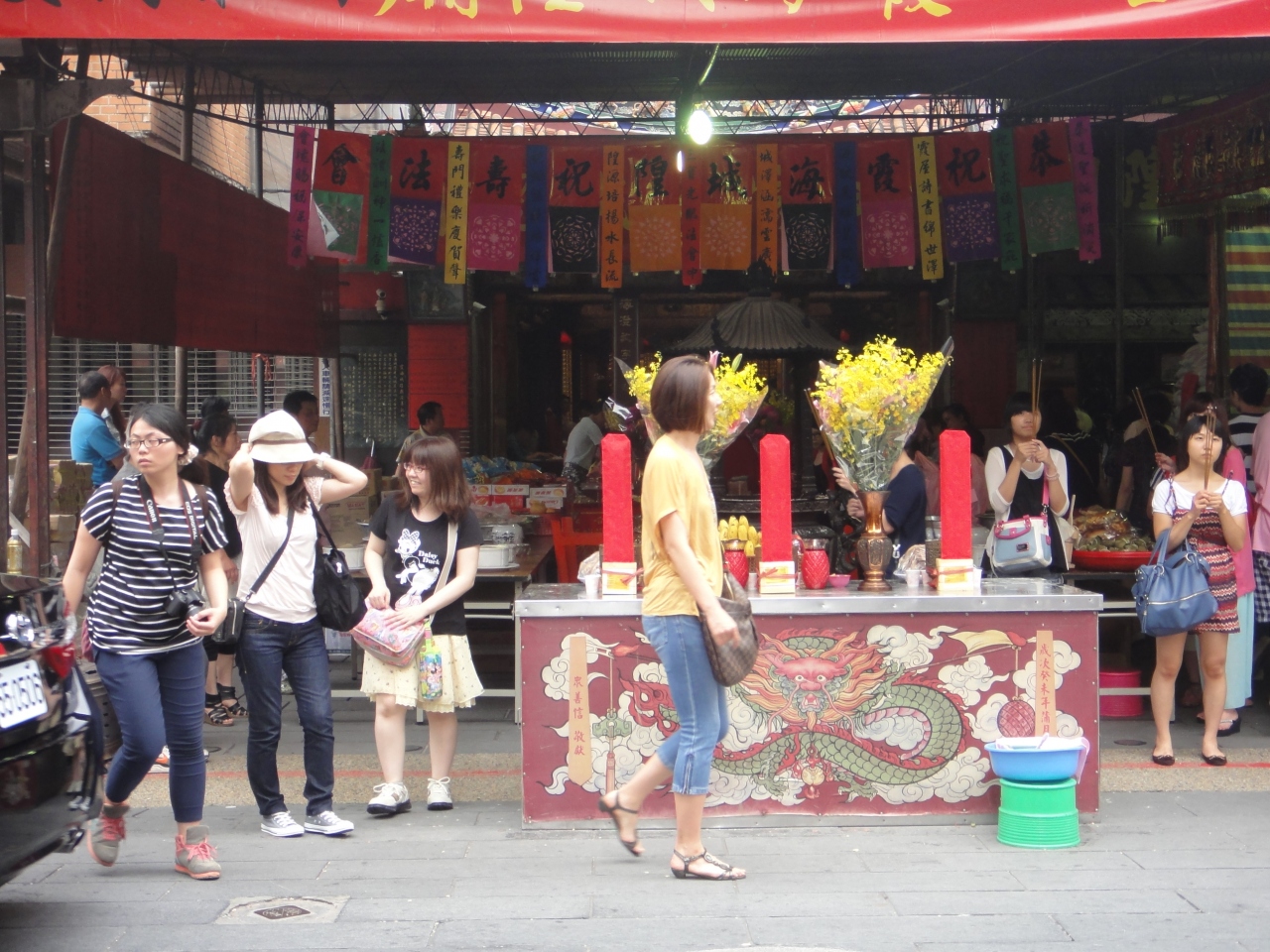 「迪化街」の中の「城隍廟」霞海城隍廟には、恋愛の神様である「月下老人」が祀られています。恋愛成就にご利益があるそうです!若い女性が願い事していました。