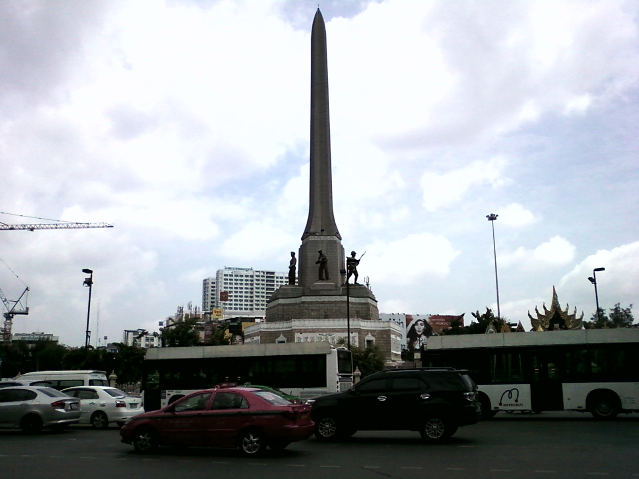 この戦勝記念塔はタイでシンボル的な場所です。軍政で落ち着いた今では、兵士の姿も少なく装甲車などの姿もあまり見られなくなりました。こちらからは多くのミニバス(ロットゥー)がタイ各地へと行く乗り場となっていました。しかし多くのミニバスが軍政の新政府の指示により、今ではエアポートレイルリンクのマッカサン駅へ移動となっていますので注意が必要です。
