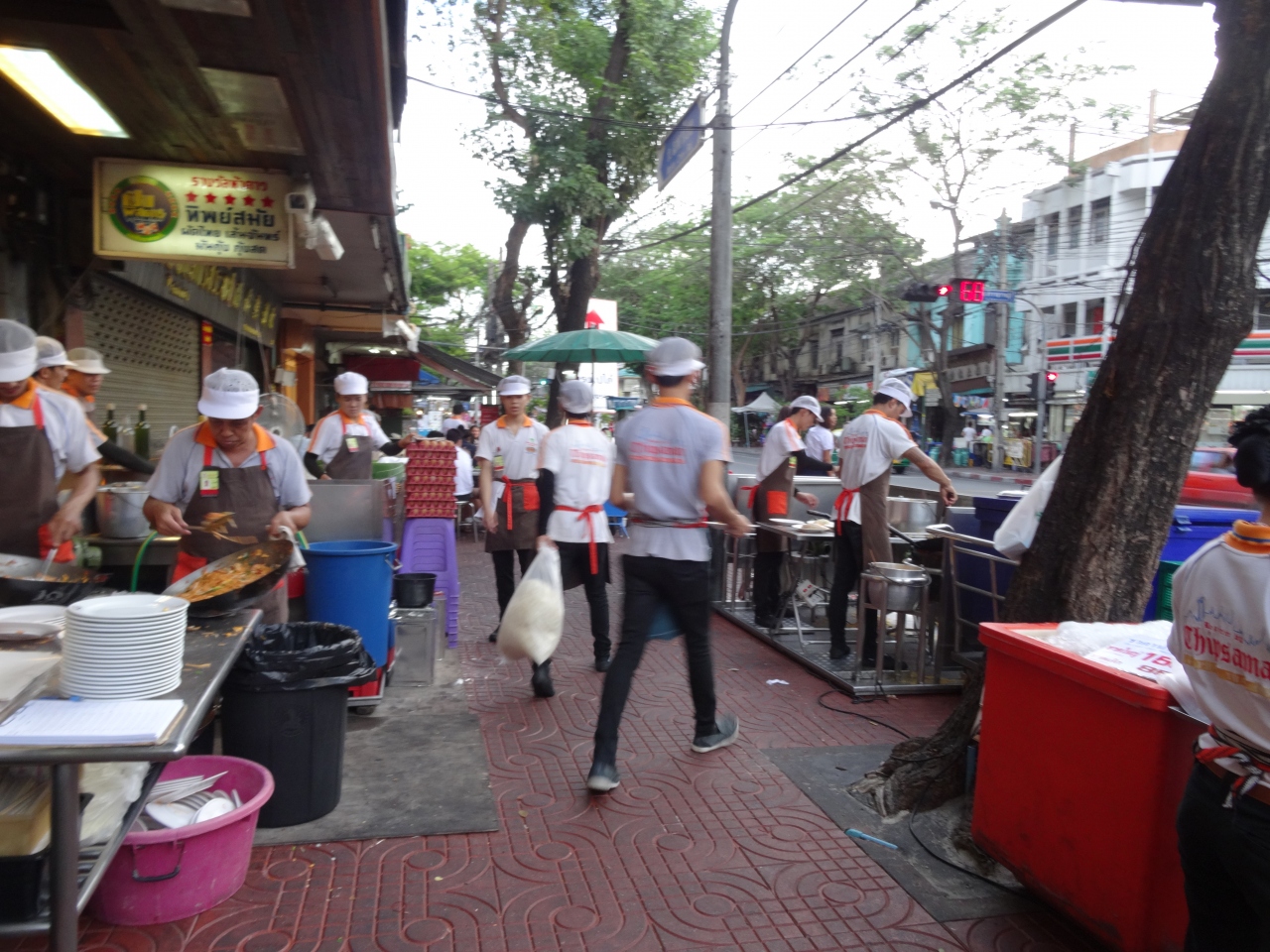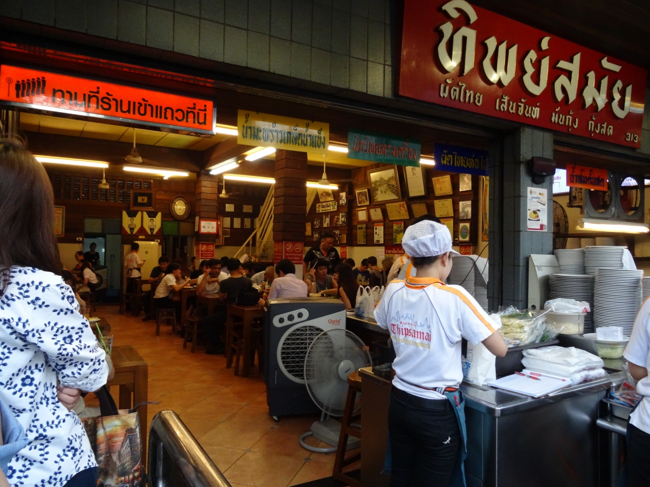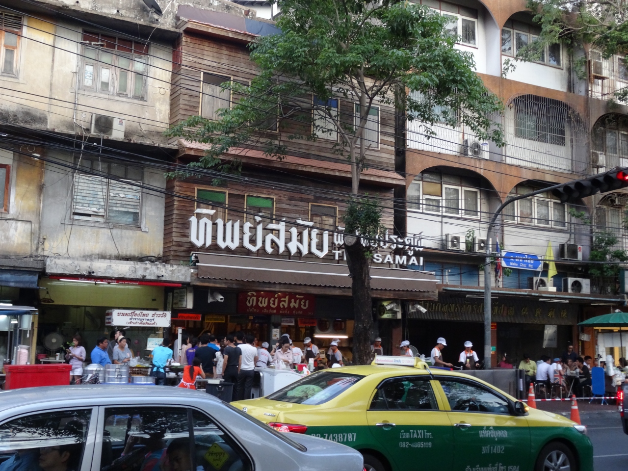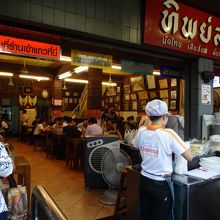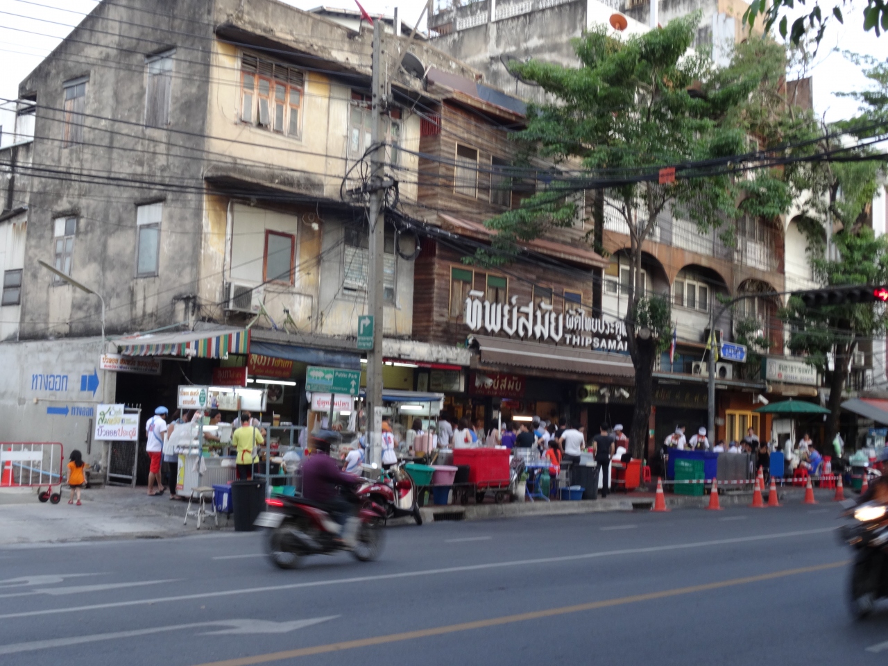 パッタイの有名店です。アクセスはあまりよくないようなので、タクシーで行くのがよいかもしれませんが、私はナショナルスタジアムからバス(15番)で行きました。マハーチャイロード沿い、人だかりしているのですぐわかります。外で、パッタイ炒めています。どんな年代でも、地元の人でも観光客でも並んでまで食べたいのが納得の味です。一緒に頼むミカンジュースも塊がゴロゴロ入っているホントの生絞りジュースで、とにかく、感激のパッタイとジュースでした。