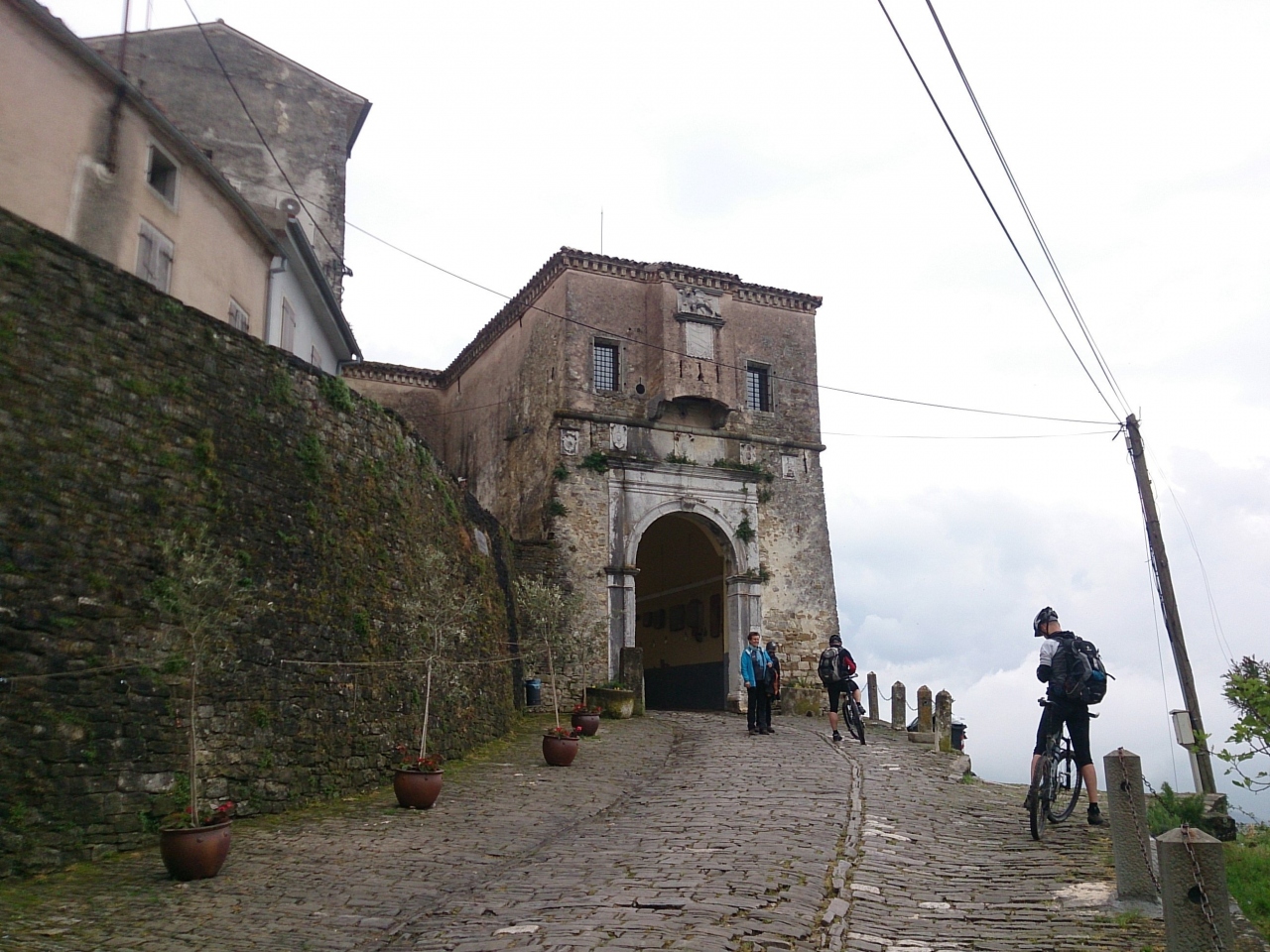 ちゃんとしたパーキングはありませんが、路上脇に止めて石畳を歩いて上ります。