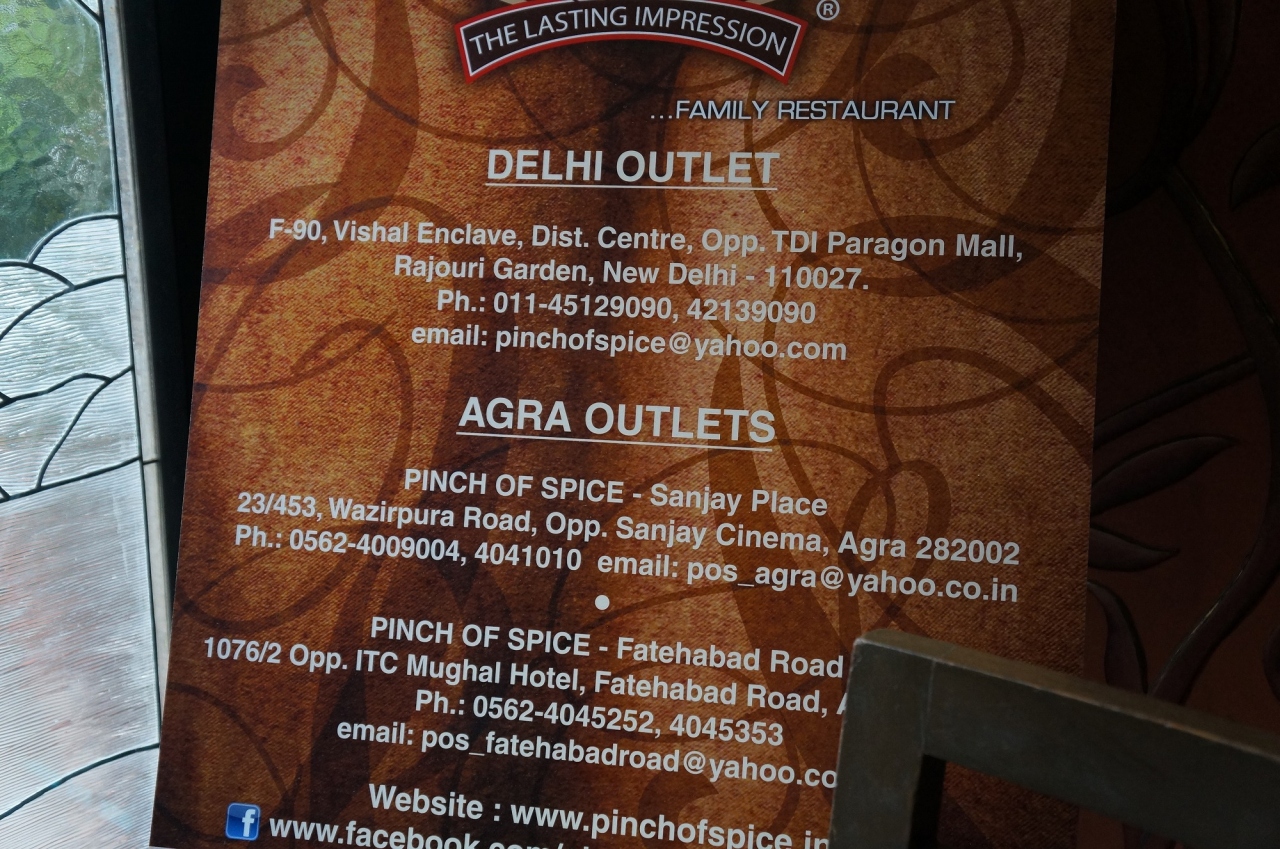 アグラでのディナーで利用しました。デリーにも支店があるみたいです。