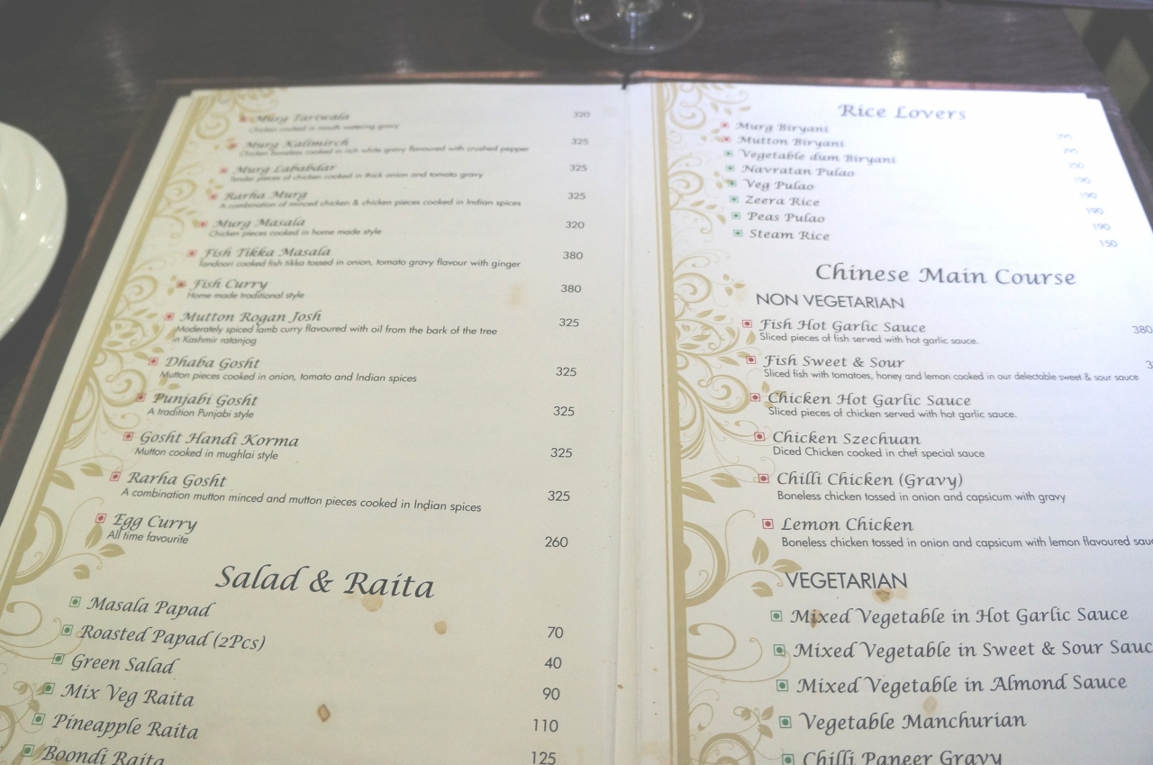 ゴージャスな店内には、外国人と中流階級以上のインド人客しか見あたらなかったので、ローカルなレストランではなく、観光客や小金持ちインド人が利用するやや高級志向のレストランだと思いました。