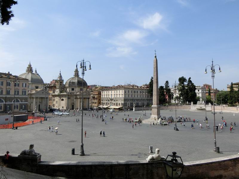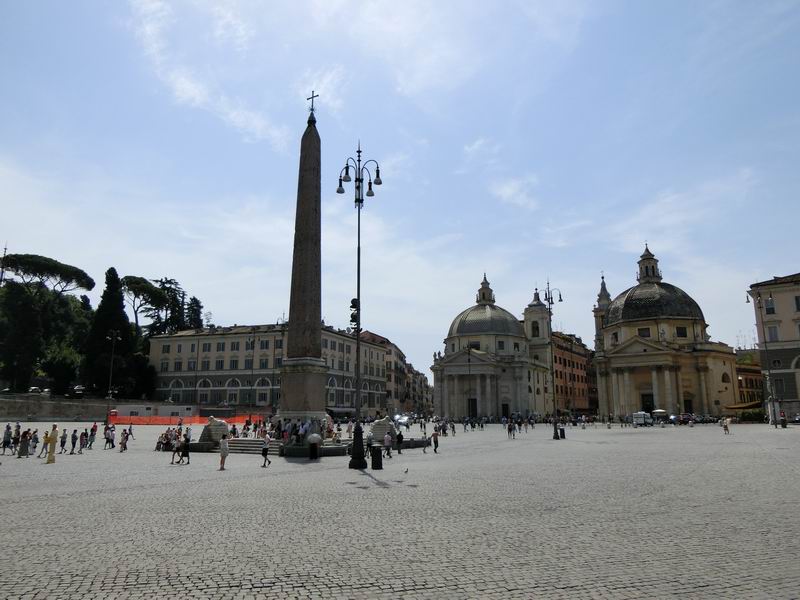 広場の中心にはアウグストゥス帝がエジプトから持ち帰ったというオベリスクがあります。北側はサンタマリアデルポポロ教会とポポロ門、南側には双子の教会と呼ばれる2つのそっくりな教会が広場に面しています。観光客が多いものの、広いこともあってそれほど気になりませんでした。ただ、日陰がないので夏は暑いです。