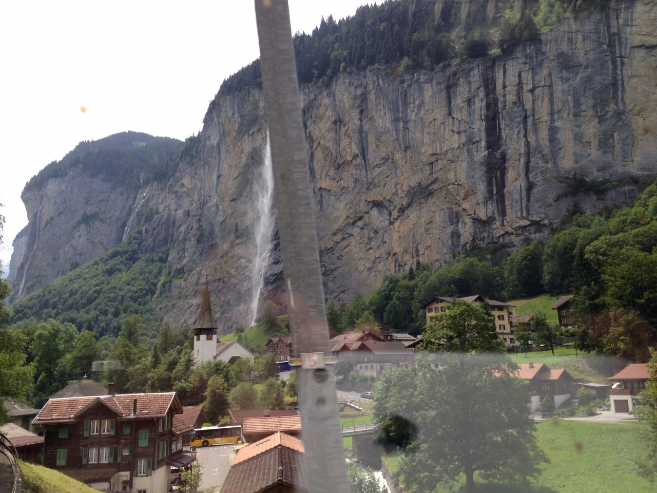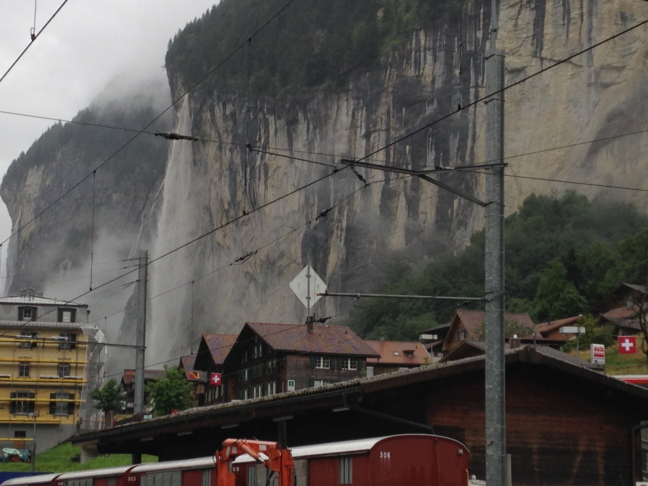 この滝が見えたら、ラウターブルネン駅。慌ててカメラを向けましたが、終点駅なので慌てなくても、プラットホームからゆっくり写真を撮れます。