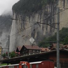 - インターラーケンから登って終点の駅が、ラウターブルンネン駅。駅からも、村のどこからも見えます。
