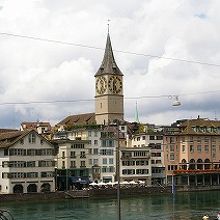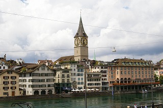 聖母聖堂、大聖堂と並び、チューリッヒ中心部にある3つの大きな教会の1つです。チューリッヒで最も古い教会のようです。こげ茶色の屋根と、大きな時計塔があるのが特徴です。近くにはローマ帝国時代の温泉宿もあります。