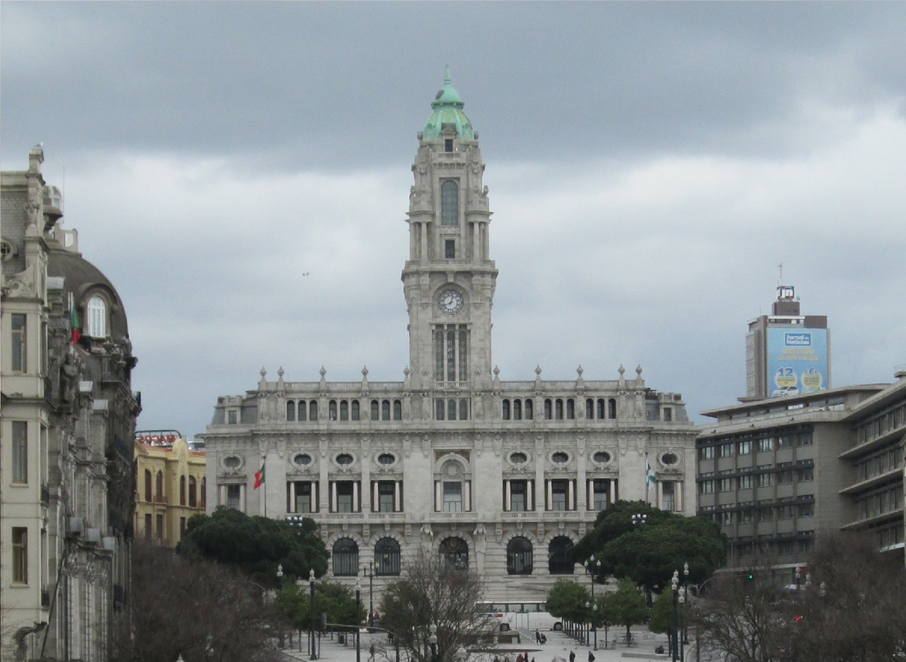 リベルダーデ広場は現在のポルトを代表する広場で、市庁舎は広場北側の奥にあるが広場から北に向かっては上り坂になっているので見上げる感じである。遠くからみても良いが近くで見ても凝った造りで正面入り口は写真の被写体に良い。市役所前から見下ろすリベルターデ広場の景観も素晴らしい。