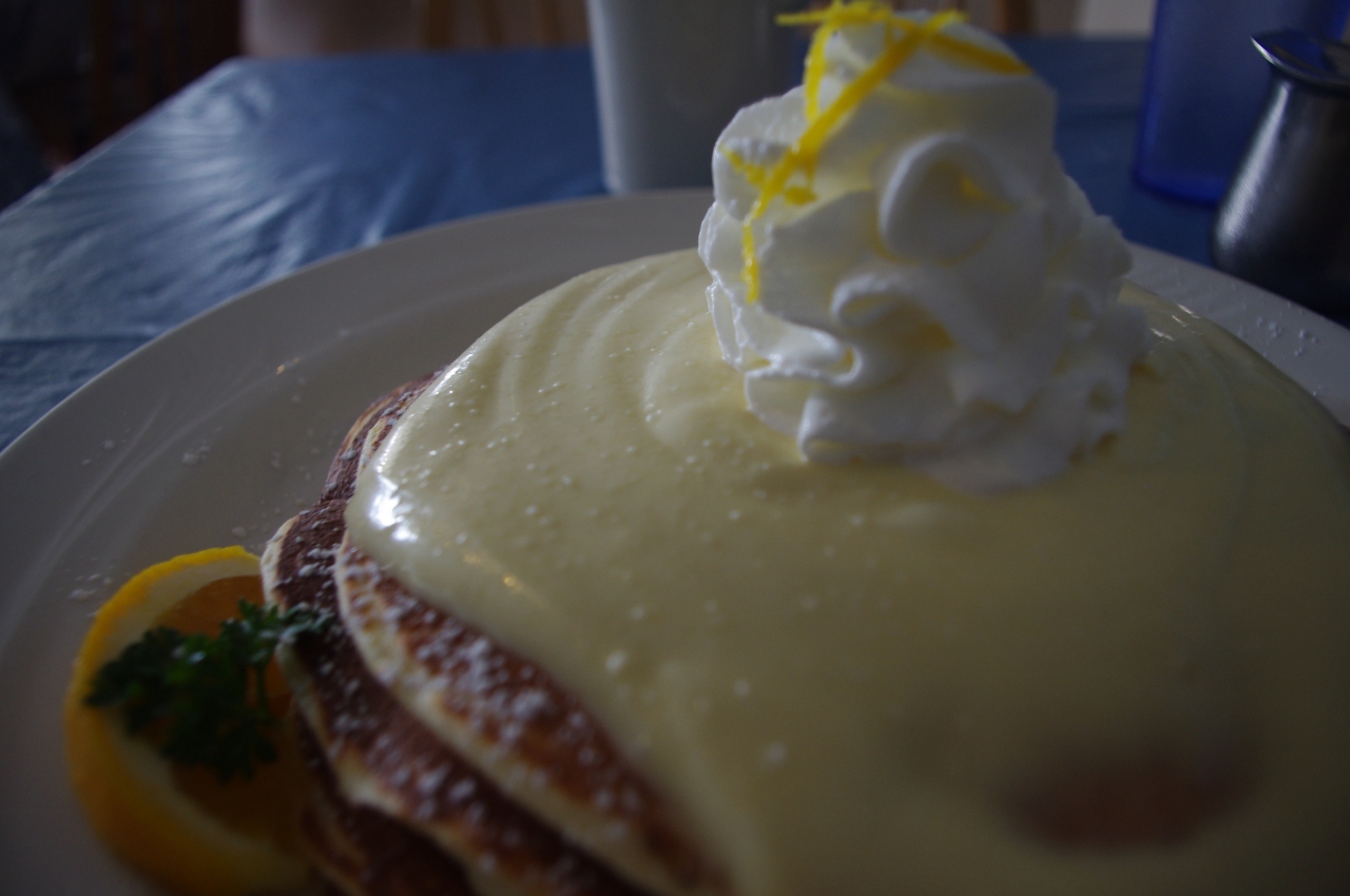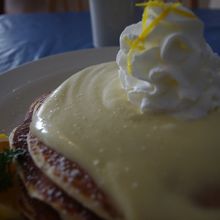 オーソドックスにリリコイパンケーキのフルスタックとコーヒーを注文。