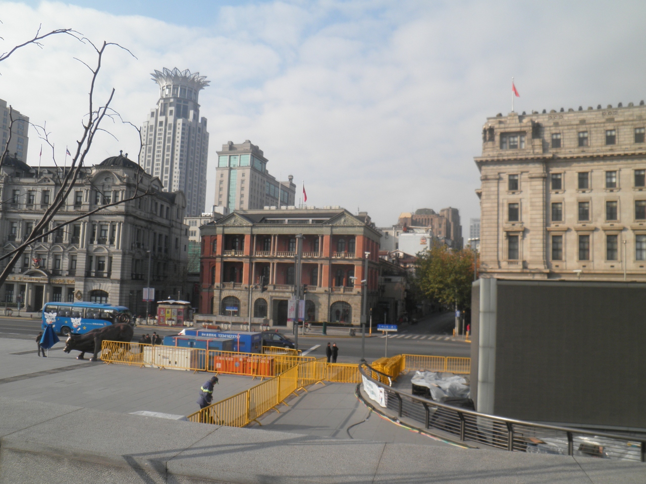中国上海の外灘地区には歴史的な石造りの建造物がたくさんたっています。 そのなかで、旧輪船招商局 は、大きくはないですが、センスの形の建物だと思います。 背景に、王冠をかぶったような、背の高いホテルの建物があってアクセントになっていいと思います。