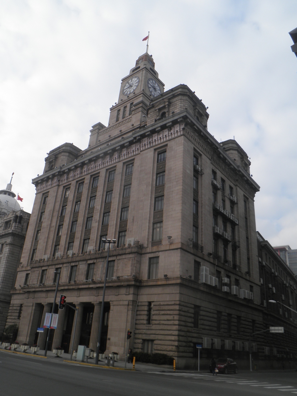 中国上海の外灘地区は石造りの歴史的な建造物が多くたっているところです。川沿いにたつ旧江海関 (上海税関)は、大きな建物で上に時計塔があるのでランドマークになっています。 ちょっと石がピンク色がかっていておしゃれな感じだと思います。