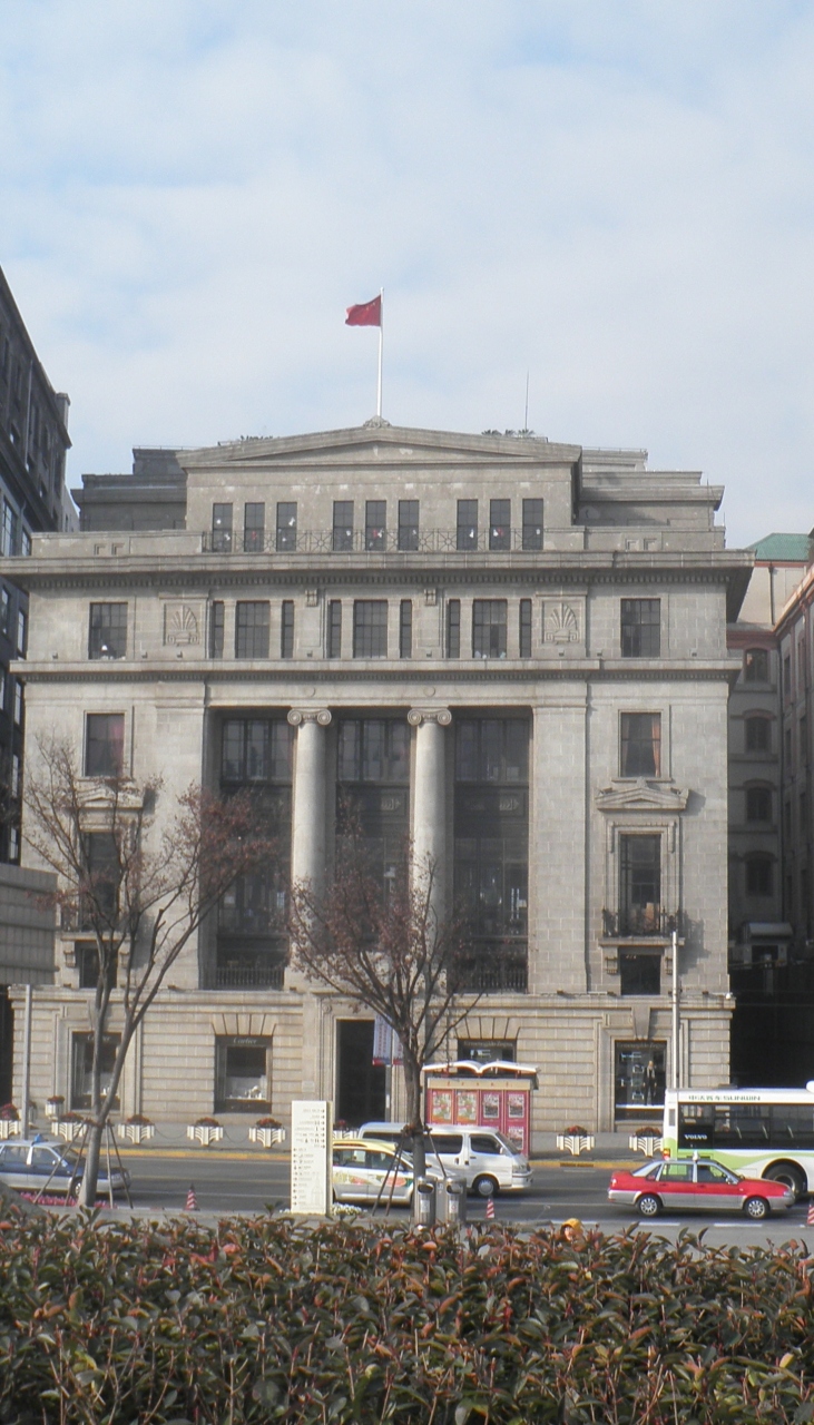 中国上海に観光旅行したとき、歴史的な建造物がたくさんあるという外灘のホテルに宿泊しました。 大きな川と一本車道を隔てて、大きな石造りのビルが並んでたっていました。 その中で、旧チャ−タ−ド銀行上海支店 (外灘18号) は、2本の丸みをおびた柱が印象的な建物です。