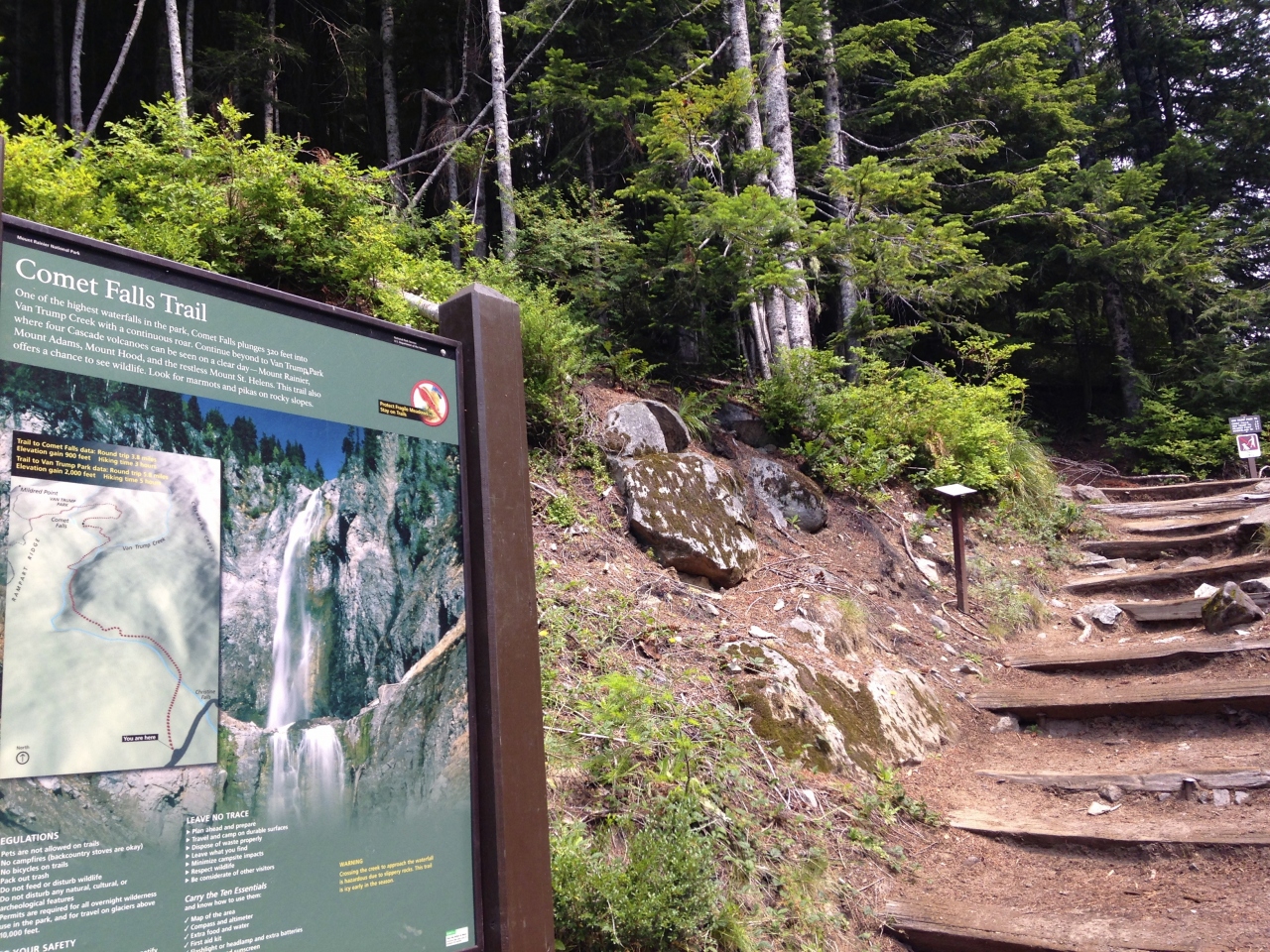 Comet Falls Trail:コメットフォールズまで往復約6km、コメットフォールズ上部(Van Trump Park)までなら往復約9km