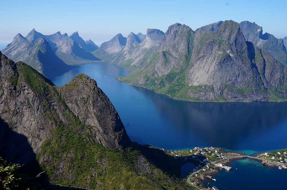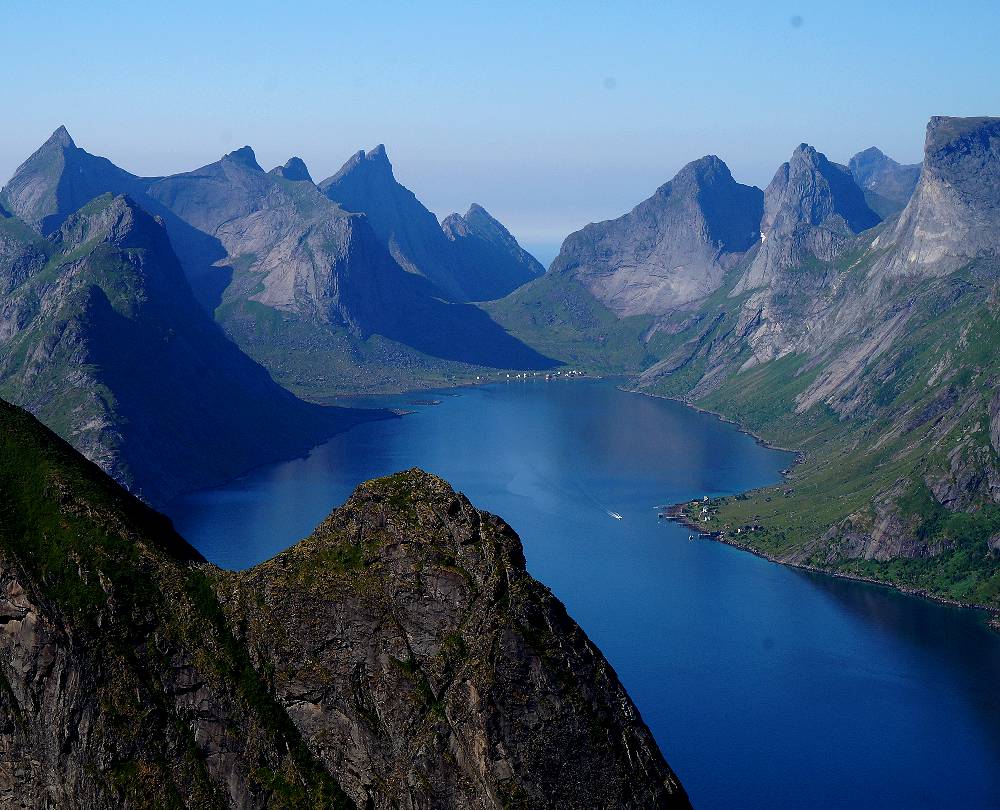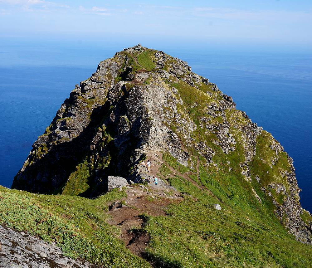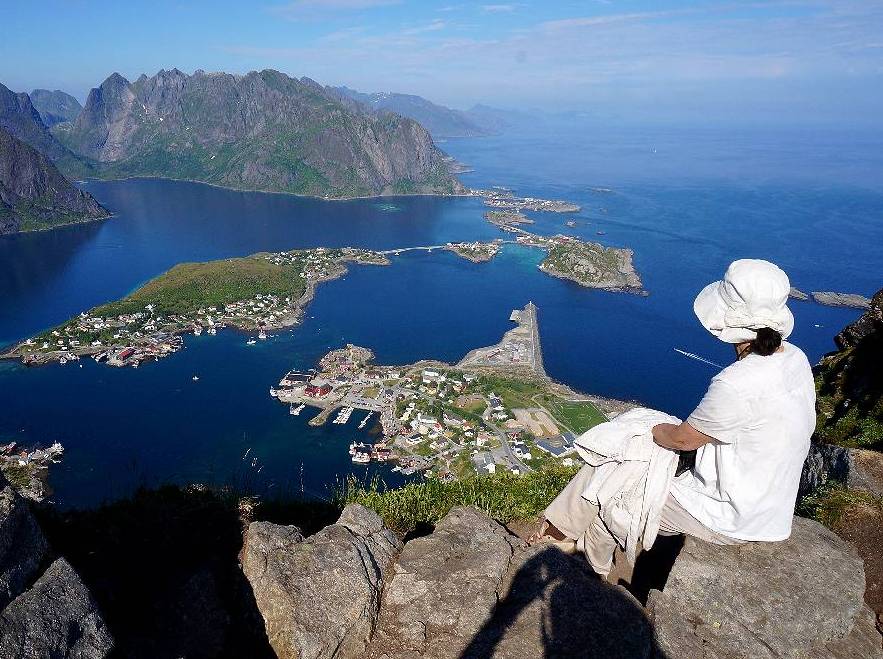 2014年7月初旬に登りました。Lodingenというところを朝出て、レンタカーで300キロ走り、レイネに着いたのが昼過ぎでした。レイネの町を走り抜け、オー方面に向かうとすぐに短いトンネルがあり、トンネルの先数百メートルのところに、車数台止まれる空地があり、駐車することができました。トンネル横の空地は反対車線にあり、よほど交通量がない時以外は駐車は困難です。登山口まで6,7分歩き、登山を開始しました。その日は異常気象で、極北のレイネでさえ、30度近く気温が上昇し、日陰もない急峻な登山道?を登るのはハードでした。外国の若い人は軽装でもたもたしている私たちを抜き去っていってしまいましたが、団塊世代の私たちは休んでいる時間のほうが長く、叱咤激励して、2時間45分後に尾根にたどり着き、絶景に出会うことができました。疲れを忘れさせるくらいの絶景でした。下りも水分不足で熱中症寸前のため上りと同じ時間かかってしまいました。高齢者にとってはハードな登山ですので、十分な体力と水分が必須です。途中ロープを使わなければならないところもあるので、軍手を忘れずに持って行ってください。絶景中の絶景ですので、体力に自信のある方は、挑む価値のあるところです。