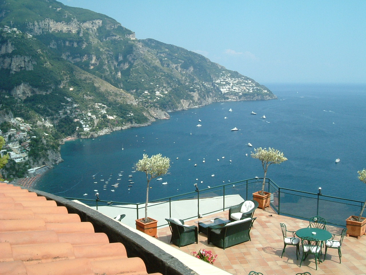 団体旅行で2つのミニバスに分乗しアマルフィー方面へのドライブの途中にポジターノはありました。かなりのくねくね道で途中気分が悪くなってしまいましたが展望台に到着したらあまりの絶景に感動し体調復活。展望台から向かい側に丁度ポジターノの崖に張り付いて建っているような可愛らしく美しい彩の建物が見えます。フローズンドリンクが売りなのか皆屋台で買っていました。1ユーロ。あとお土産やさんもあり雑貨食材など売っていました。