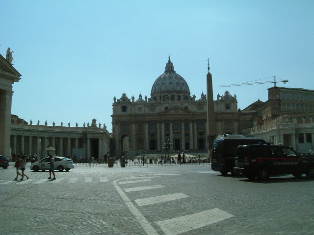 サンピエトロ大聖堂前の大きな広場です。噴水があったり彫像があったりツアーの待ち合わせ場所になったりもしていました。ガイドさんによるとローマ法王のお姿を拝謁できる日はこの広い広場が人で埋まってしまうとのこと。特に現法王はとても人気があるそうです。どちらを向いても絵になる建物があるのでまた写真をたくさんとってしまいました。
