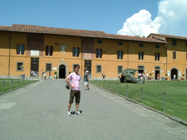 ツアーでピサを訪れましたが見学は自由散策ということで個人で見て回りました。大聖堂の前に広がるきれいな芝生の広場です。大聖堂、納骨堂、斜塔、洗礼堂が周りにあります。とても暑い日でしたので建物添いの日陰になっている芝生の上で観光客が座り込んで休憩していました。