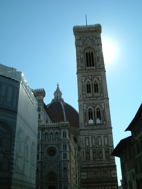 大聖堂の隣に建っている大聖堂と同じ大理石で作られた鐘楼です。最初の製作者がジョットといいその死後弟子たちが引き継いで完成したそう。ドゥオモの丸いドーム部分と対照的に天に向かってすっくと伸びているその姿が余計にお互いを引き立てており印象に残る。