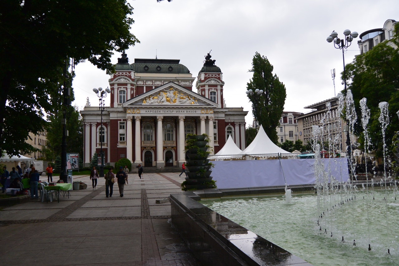 イヴァン ヴァゾフ国立劇場は、ソフィアの市民公園の近くにあります。ブルガリアの国民的作家である、イヴァン ヴァゾフの名を冠した劇場です。750人収容の大ホールがあります。残念ながら時間的な制約から外観だけの観光でした。ファサードは金をあしらった彫刻が美しく、また、前庭には噴水があって周りの雰囲気はとても良いところにあります。