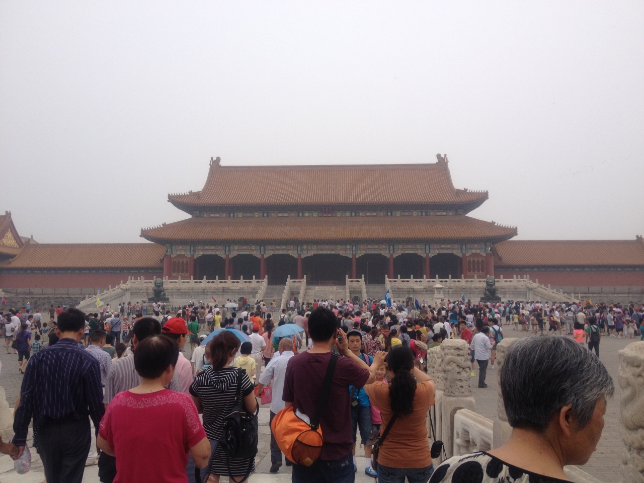 天安門東駅を降りた時から人人人。平日でもとにかく人が押し寄せている。チケットを買うのも並ぶし中国人お得意の割り込みに気をつけなければなりません。数ある建物のうち、内部を公開しているものがいくつかあるのですが、いずれも解放された扉から中を覗くような形で入ることはできませんでした。その扉の前にも人が押し寄せ順路もなにもあったもんじゃないので写真を撮るもの一苦労。ですが、人が多い分ひとりで行っても写真をお願いしやすいという利点はあります。