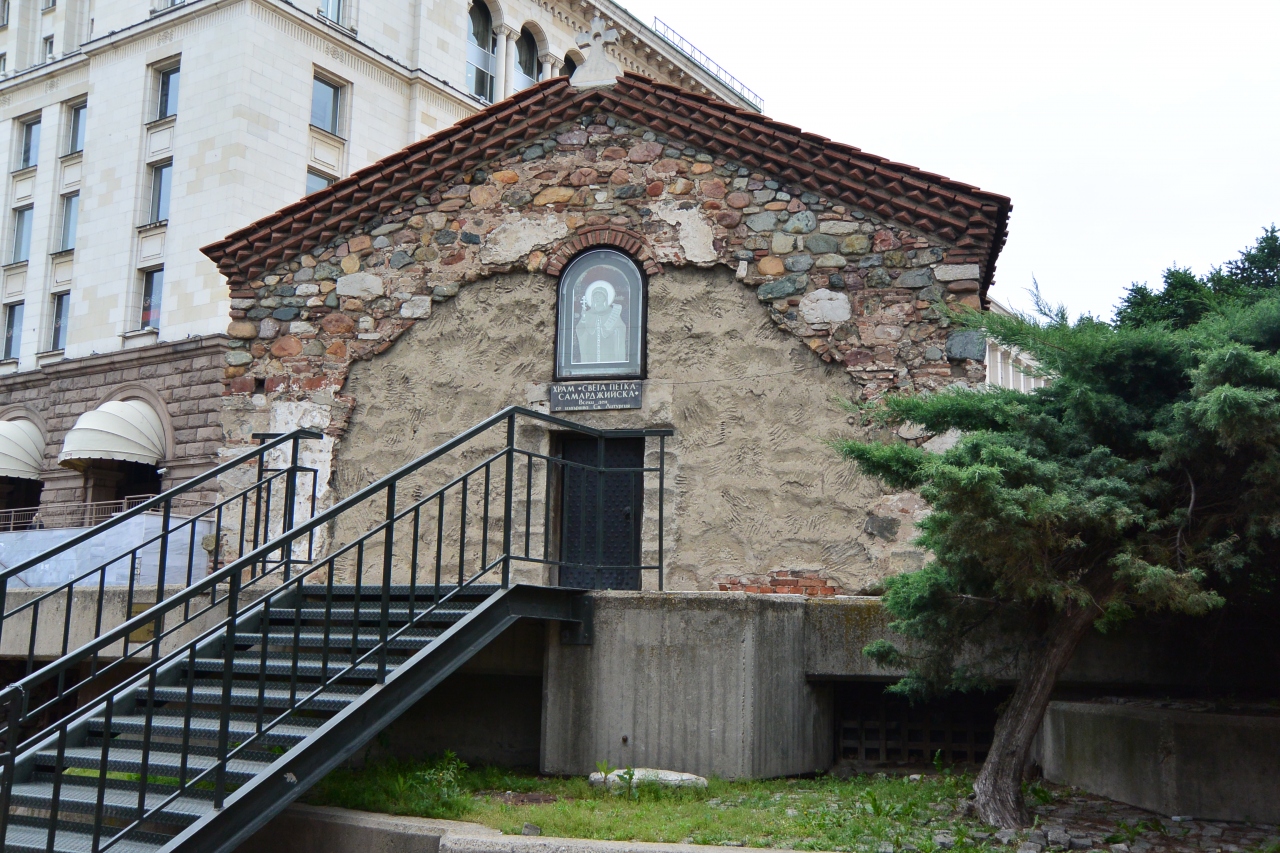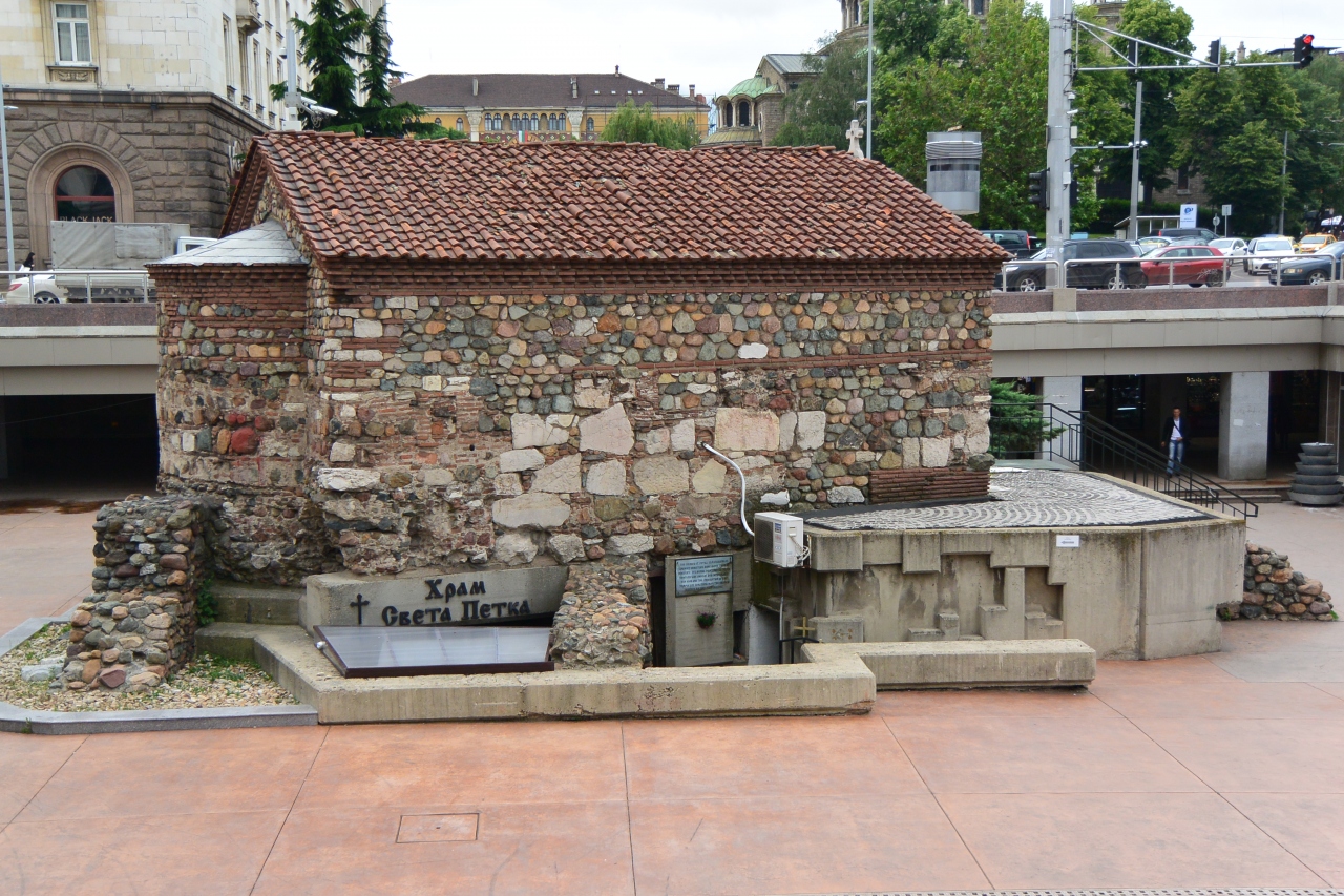 聖ペトカ地下教会は、ソフィアの街の中心のヴィトシャ通りの北地下鉄セルディカ駅の通じる地下道に建っている珍しい14世紀の教会です。屋根は見えますから半地下というところです。残念ながら内部は見学しませんでしたが、装飾が素晴らしいそうです。