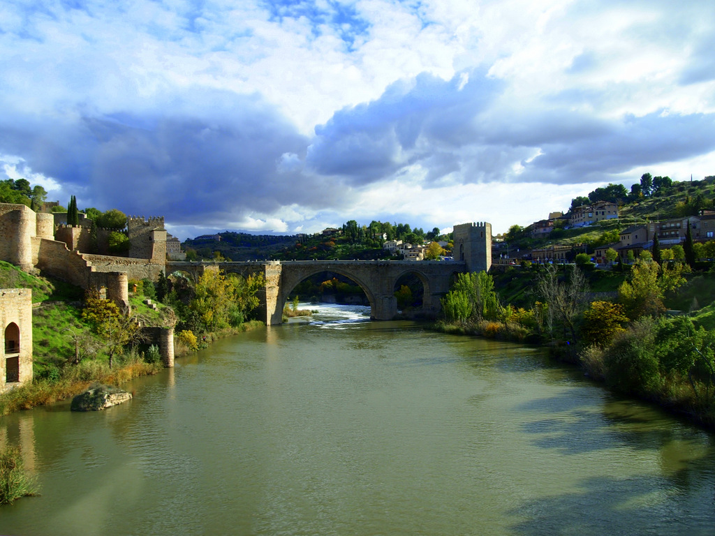 今の橋は、10世紀に再建されたもので、トレド市街ををかこむように流れるタホ川にかかる歴史ある2つの石橋のうちのひとつです。