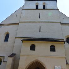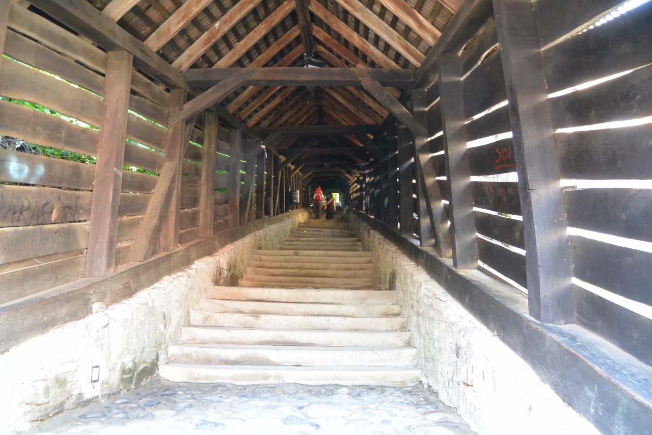 旧市街の南西に位置する高台にある山上教会に行くには、280段の階段を登ります。この階段には屋根がついており、降雪があっても登れます。教会のすぐそばにドイツ語学校があり、この階段は、親たちが、冬に雪が降っても子供たちが通学できるように配慮して造ったものだそうです。6段の階段の次に少し平になってまた6段の階段というふうに繰り返し階段があって登りやすいのでご安心を。子供たちは、平気でここを行き来しているのだと思うと寒い冬の運動不足解消になりそうです。