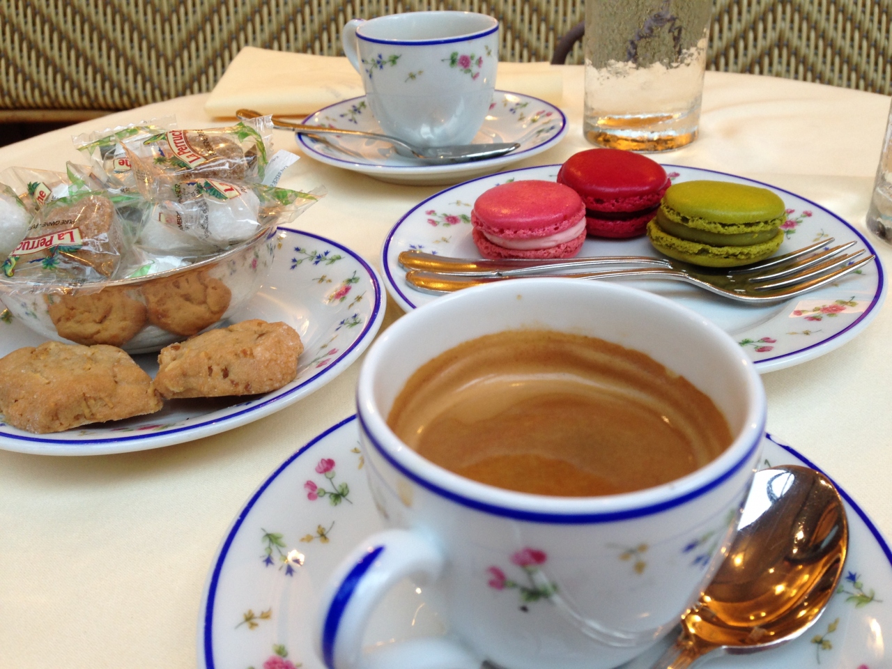 ビールとワイン、野菜サラダ、ステーキ、オニオングラタンスープ、食後にマカロンとエスプレッソ。全部で78.10ユーロ。ステーキ美味しかったけど、29ユーロは高かった。。