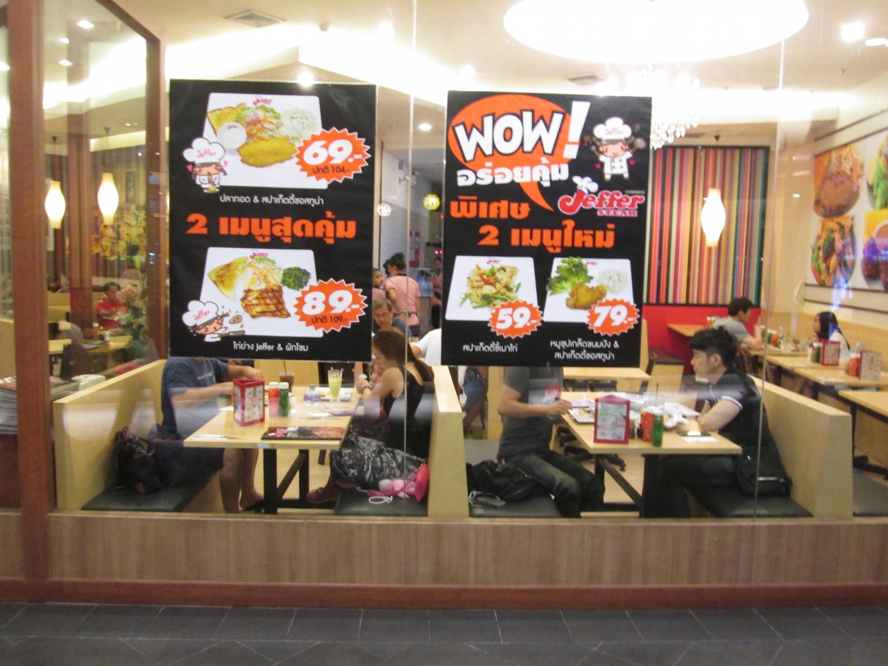 ターミナル21の4階、5階にはフードコート以外にもファストフードや専門店がたくさんあります。辛い料理が苦手な私は洋食、日本食に走ってしまいます。JCBカードを利用するとディスカウントされたりする店があったり、セットで注文すると割安になったりするのでチェックして利用すると良いです。