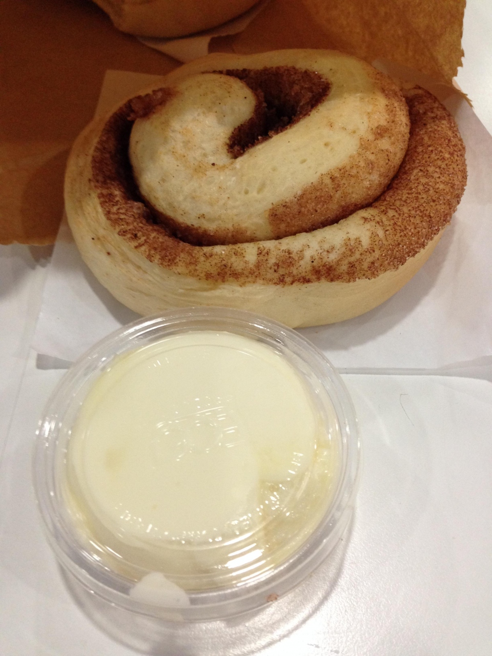 シナモンロールは、クリームの甘さが疲れた体にはおいしく感じます。